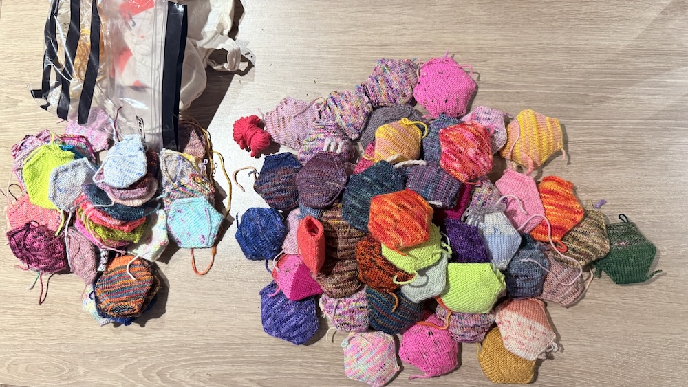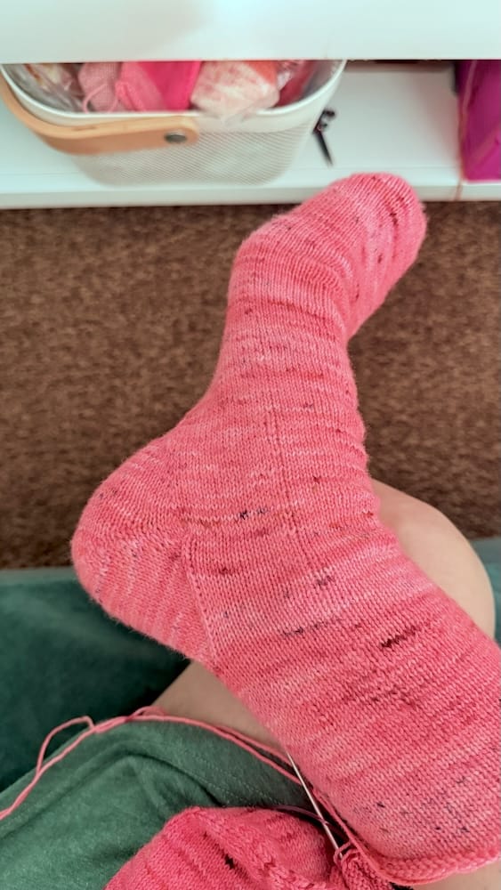 Outre un cardigan en brioche entamé cet hiver avec de la laine Phildar à paillettes (on ne se refait pas !), j'ai presque terminé ces chaussettes avec un fil divin de TréLiz acquis au Knit Eat 2024. La recette est improvisée ! Le talon est un mélange de Fish Lips Kiss Heel et de double gousset un peu au pouce mouillé. J'ai un gros cou de pied et je n'aime pas quand les mailles tirent sur le dessus du pied, on ne se refait pas :D