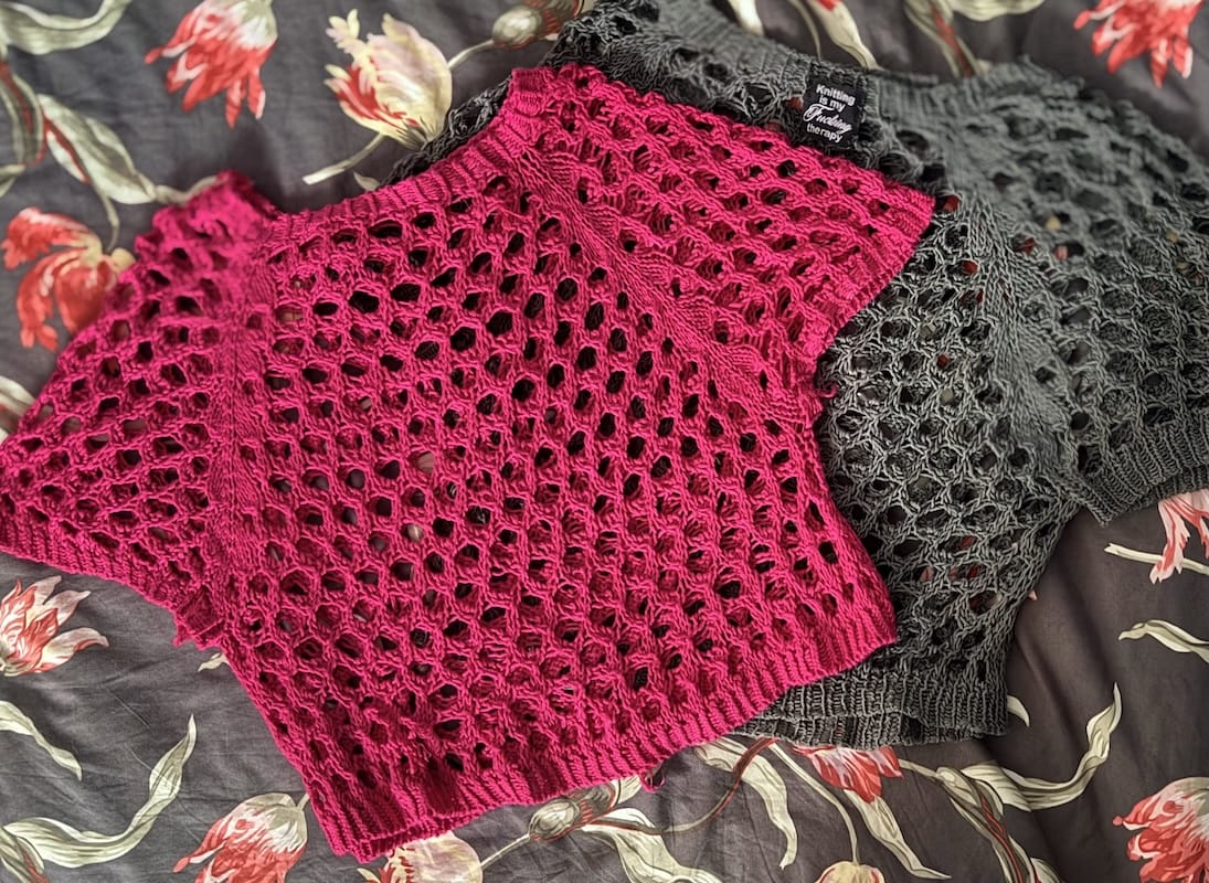 Revenons à quelque chose de plus positif. Qu'ai-je donc tricoté dernièrement ? Un deuxième "Look at my holes" de James N Watts en bambou de la Droguerie. C'est vraiment un super patron, sur un t-shirt ou un débardeur, il produit son petit effet !